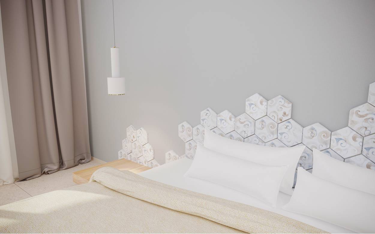 Lines that intersect with joy and chromatic rhythm. The first decor developed in the Made in SlowTile Sipario laboratory which from the famous placemats has been transposed onto ceramic, where it re-proposes its unpredictability.